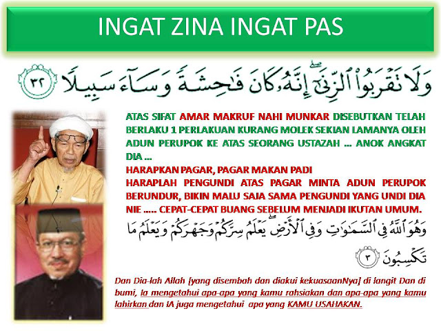 5. Demikianlah sikap yang dipertunjukkan oleh sebuah PARTI POLITIK yang tidak ada BANGSA dan bermazhab POK NIK dan selama ini seringkali mentakfirkan orang ISLAM lain yang tidak sehaluan dengannya malah sanggup menuduh orang lain sebagai assobiyah dan sekular tanpa alasan yang benar.